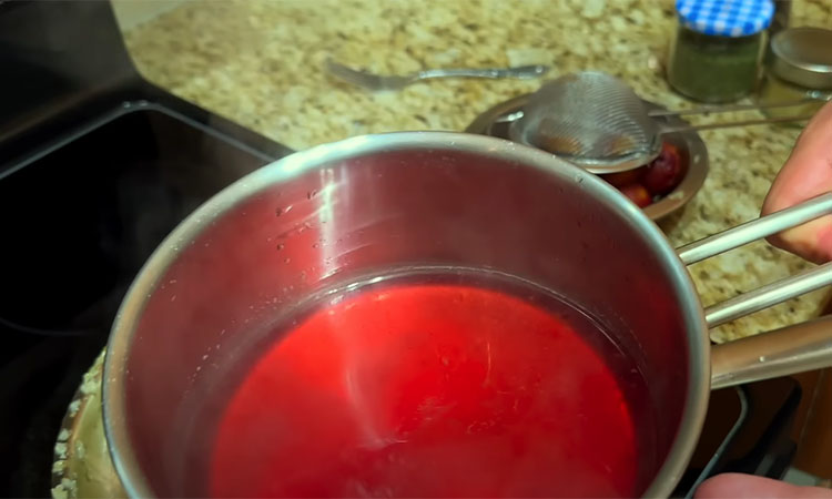 Sultinį virkite ant silpnos ugnies 1,5–2 valandas, kol mėsa suminkštės. Kol sultinys verda, paruoškite slyvas: užpilkite jas stikline vandens ir užvirinkite. Virkite ant silpnos ugnies 5 minutes, tada slyvas perkoškite per sietelį, kad gautumėte padažą. Atskirame puode pakepinkite smulkintą svogūną, tada sudėkite salierą ir pomidorų pastą, troškinkite, kol išsiskirs skoniai.