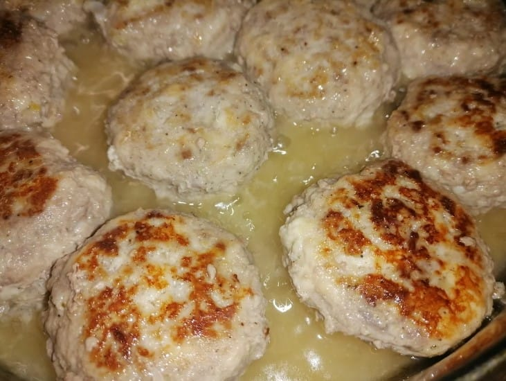 Kiaušinių irgi nenaudoju. Kiaušiniai padaro kotletus labai tankius, o iš mėsos išteka visos sultys. Tik gerai išminkykite ir išplakite faršą, tada kiaušinių nebereikia;