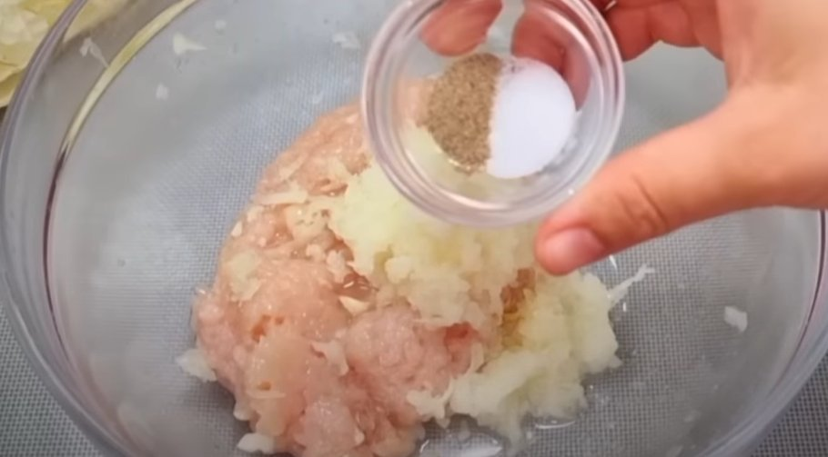 1. Įdarui į maltą mėsą (bet kokią) įdėkite stambiai tarkuotą svogūną, pagal skonį įberkite druskos ir pipirų. Išmaišykite.