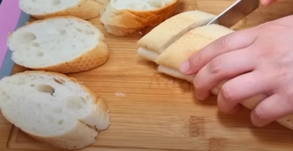 3. Duoną arba kepalą supjaustykite 1 cm storio griežinėliais.