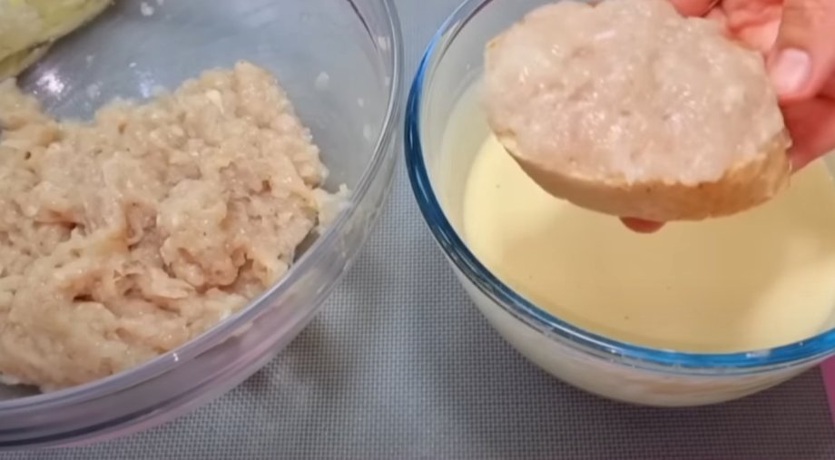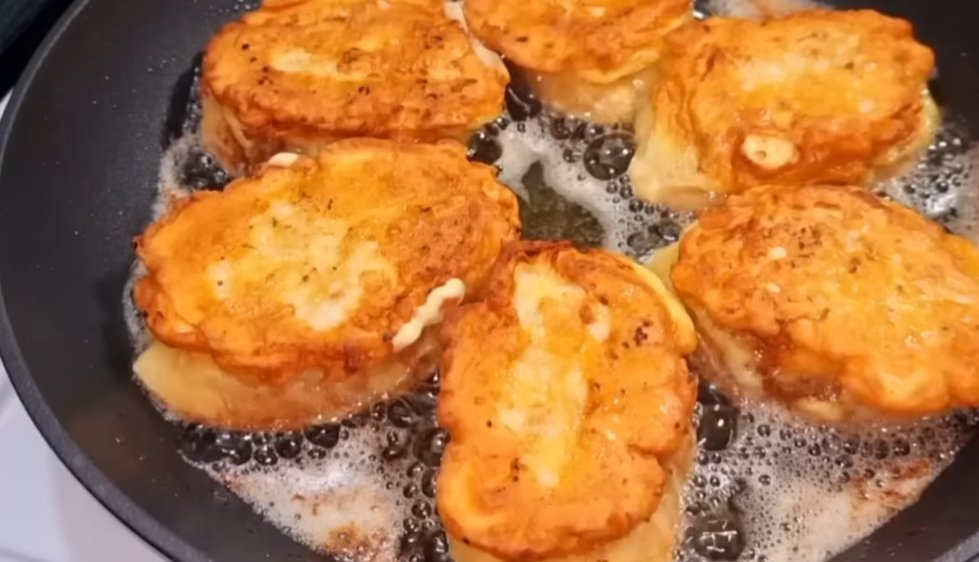 5. Kiekvieną gabalėlį iš abiejų pusių pamirkykite tešloje ir sudėkite į įkaitintą keptuvę su aliejumi. Kepkite ant vidutinės ugnies, kol abi pusės taps traškios.