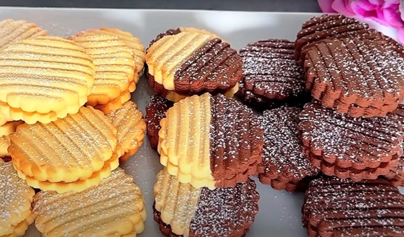 Sausainiai gaminami iš šviesios ir tamsios tešlos. Sausainius dėkite ant pergamentu išklotos kepimo skardos.