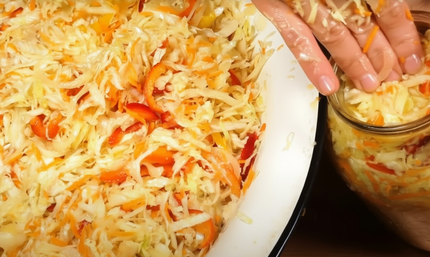 Pakartokite sluoksnius, pakaitomis dėdami svogūnus ir paprikas, ir galiausiai įpilkite augalinio aliejaus. Nukoškite marinatą, kad pašalintumėte prieskonius, ir supilkite jį į paruoštus stiklainius, sandariai supakuodami turinį. Užsandarinkite stiklainius dangteliais ir leiskite jiems atvėsti.