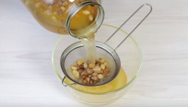 3. Nusausinkite skystį ir laikykite jį šaldytuve. Nepamirškite perkošti.