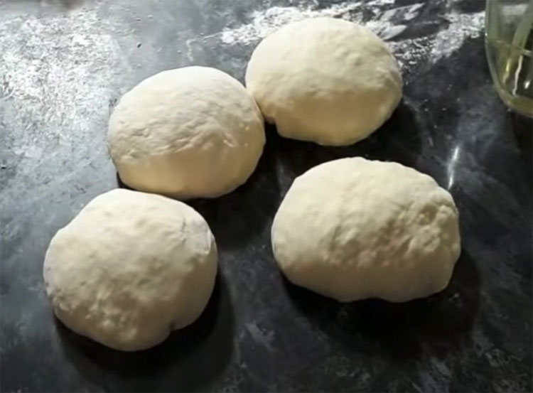 2. Minkykite tešlą 5–7 minutes, kol ji taps vientisa. Jei tešla limpa prie rankų, įberkite šiek tiek miltų. Apvyniokite tešlą maistine plėvele arba uždenkite rankšluosčiu ir palikite 30 minučių kambario temperatūroje.
