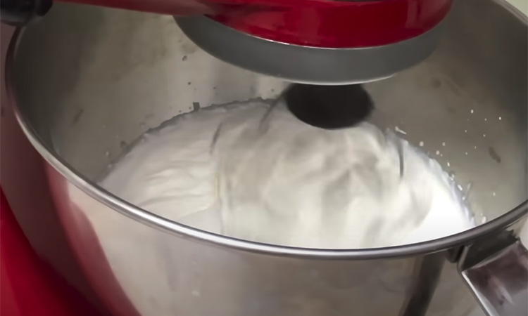 Grietinėlę ir gilų dubenį atvėsinkite šaldytuve. Kai grietinėlė atvės, supilkite ją į dubenį ir plakite mikseriu vidutiniu greičiu. Iš pradžių mišinys sutirštės kaip plakta grietinėlė, o tada pradės atsiskirti: plakant toliau, skystis atsiskirs, o riebalų dalelės sudarys mažus gumulėlius.