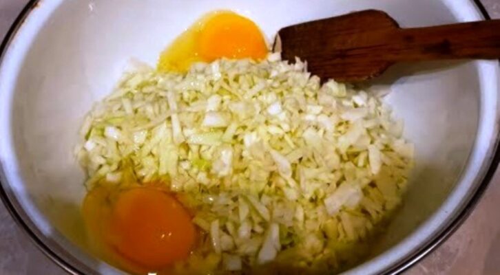 sumaišykite su malta mėsa, išmaišykite. Likusius svogūnus susmulkinkite, morkas sutarkuokite stambia tarka, išskobkite
