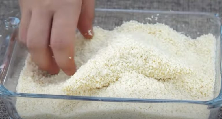 Mes įsmeigiame pyragą į plaktą kiaušinį, duoną, jis yra krekinguose, ir kepame keptuvėje iš abiejų pusių, kad skaistintų.