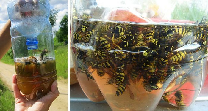 - Naminiai spąstai. Iškirpkite plastikinį butelį, įpilkite saldaus sirupo į vidų, įkiškite viršutinę dalį aukštyn kojomis – vapsvos įkris į spąstus ir negalės išlipti.
