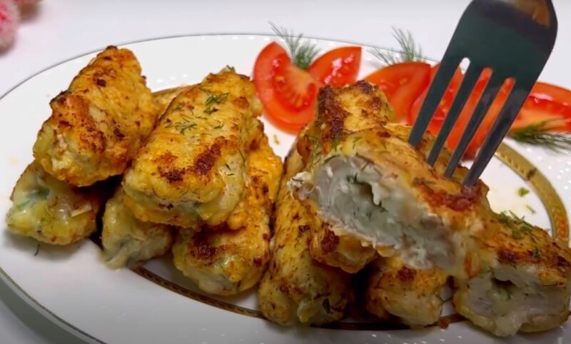 Šiems vištienos vamzdeliams su sūriu tinka beveik bet kokiam šoniniam patiekalui.