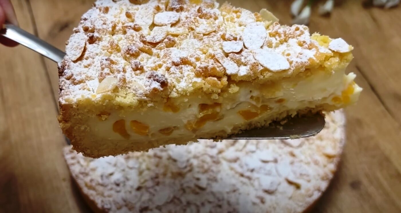 Persikai šiame recepte gali būti pakeisti mandarinais, kad būtų naujesnė patiekalo nuotaika.