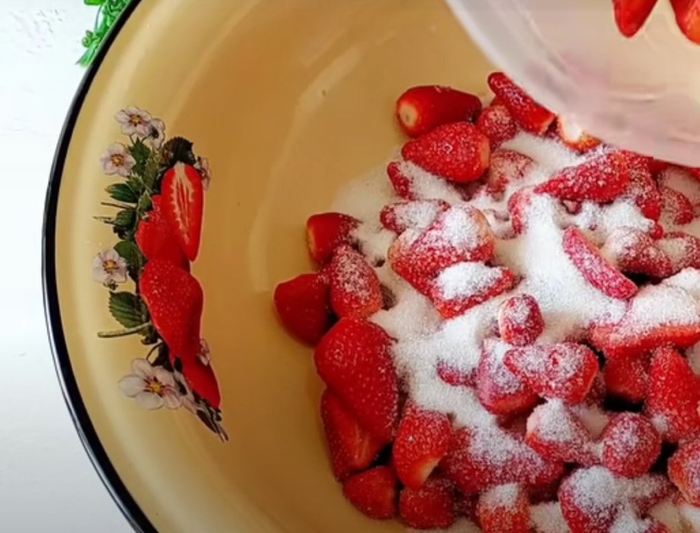 Braškėms paruošti jums reikia tik uogų ir cukraus lygiomis dalimis.