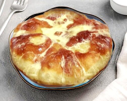 Glaistas turi būti šiek tiek storas. Mes sutepame jos bandeles ir patiekiame savo kvepiančią sodrią kepimą su varške prie stalo.