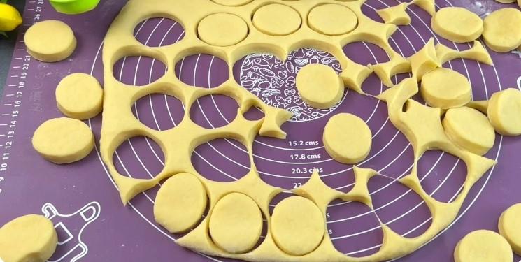 Mes išpjaustėme apvalius ruošinius naudodami formą.