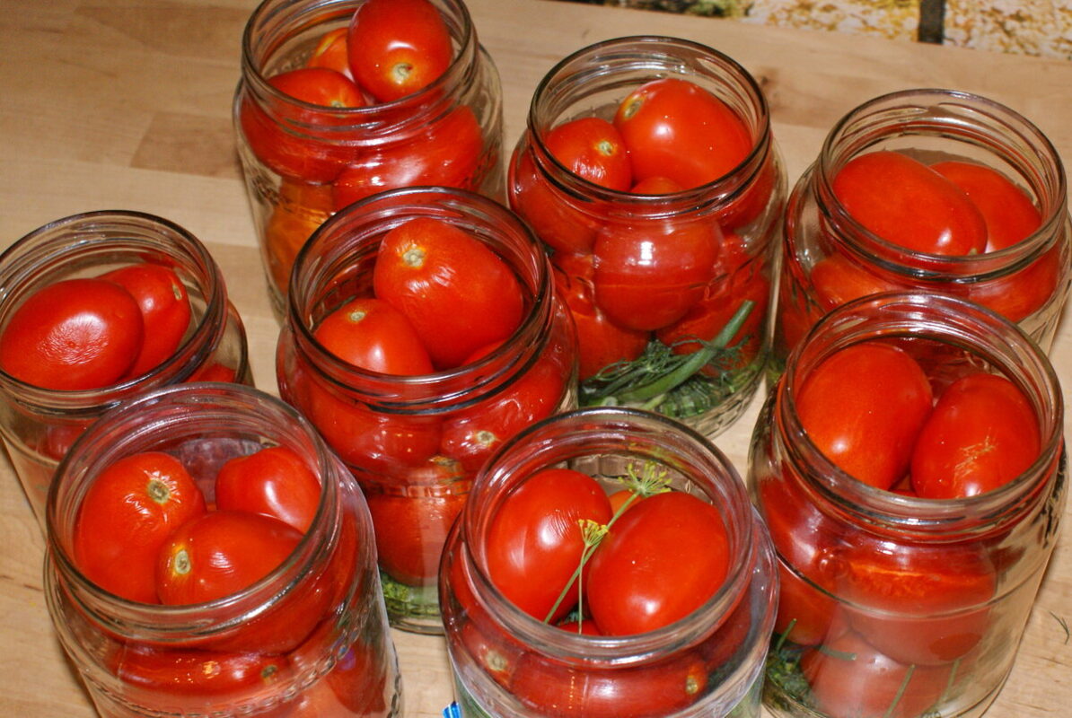 Litriniam stiklainiui – 2 valgomieji šaukštai keksapo be šlifuoklio, druskos – šiek tiek daugiau nei pusė valgomojo šaukšto ir kavos šaukštelis citrinos rūgšties. Pomidorus perkošti, sudėti į stiklainį