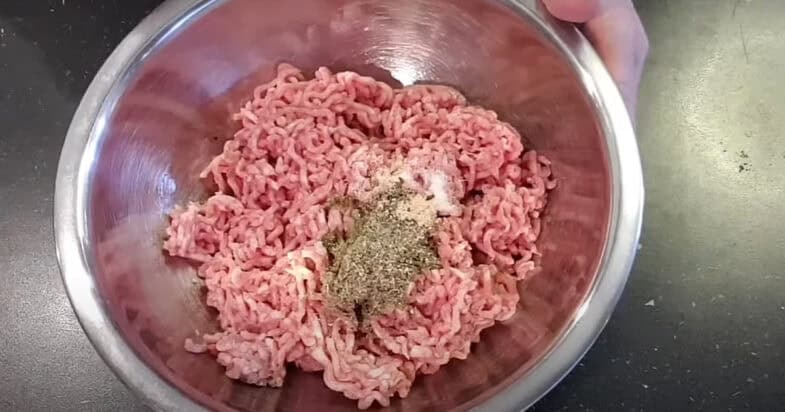 Į maltą mėsą, jei reikia, įberiu prieskonių, vandens, išmaišau rankomis ir išplaku.