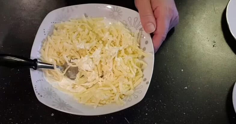 Grietinę sumaišau su majonezu, per presą išspaustu česnaku ir tarkuotu sūriu.