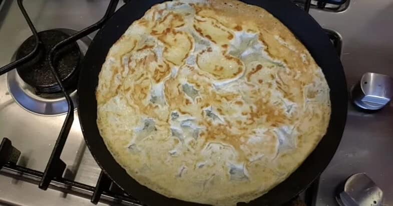 Kiaušinius išplaku su pienu, druska ir pipirais. Prieš pirmąjį blyną keptuvę patepu sviestu ir klasikiniu būdu kepu blynus iš abiejų pusių iki auksinės rudos spalvos.