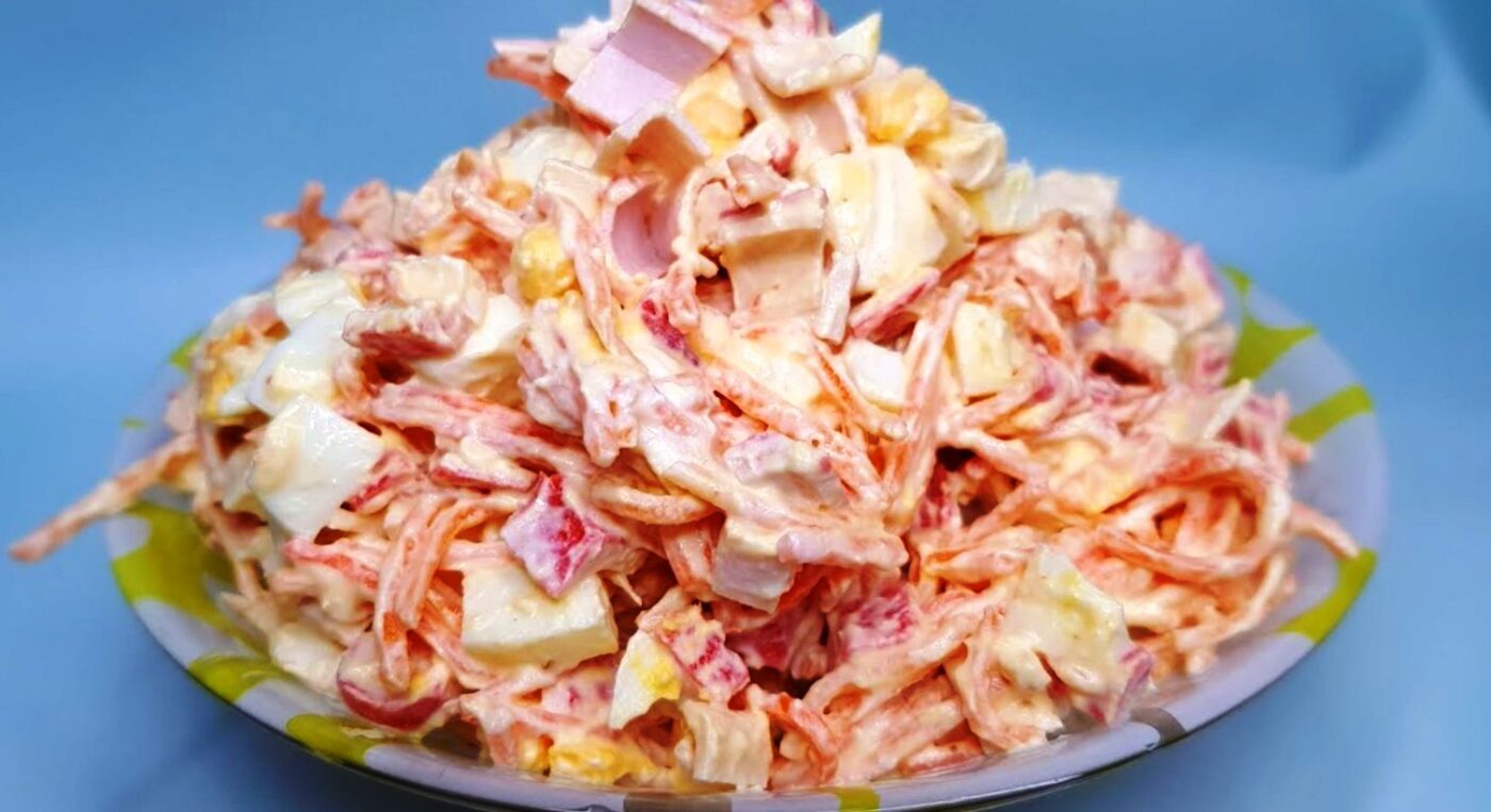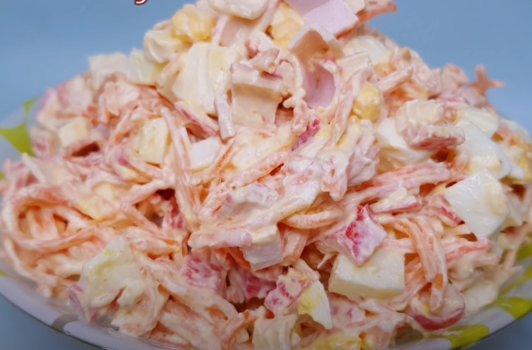 Sumaišykite krabų lazdeles, sūrius, morkas, užpildykite majonezą ir patiekite prie stalo. Tačiau, kad salotų skonis atsidarytų ir taptų ryškesnis, patariu jį nusiųsti į šaldytuvą 30-40 minučių, kad jis atvėstų.