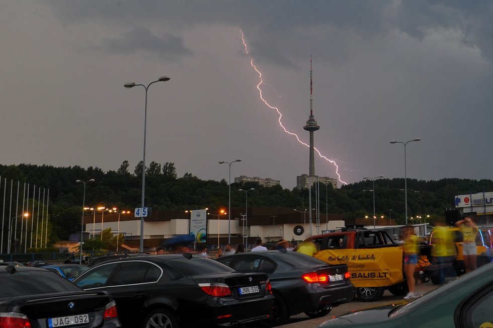– Jei perkūnija užklupo važiuojant automobiliu, patartina sustoti, įtraukti anteną, nesiliesti prie metalinių detalių ir ramiai palaukti.