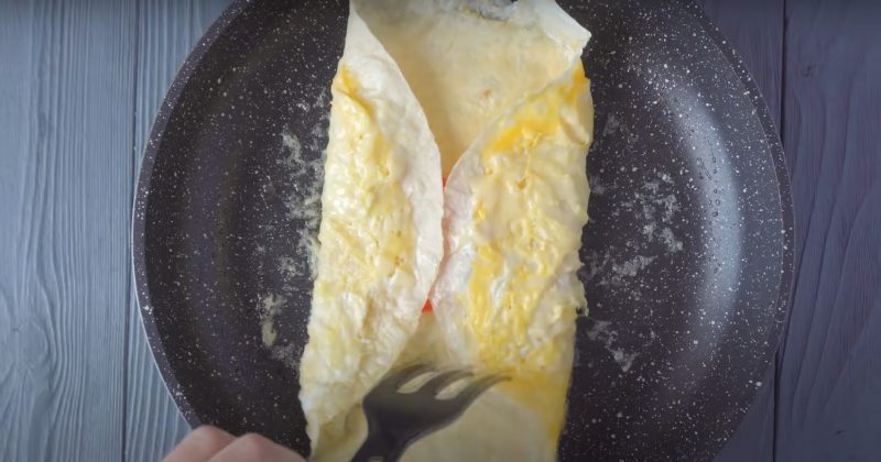Nuplaukite daržovę lavaše, sudarydami voką. Mes kepame patiekalą 1,5 minutės iš abiejų pusių.