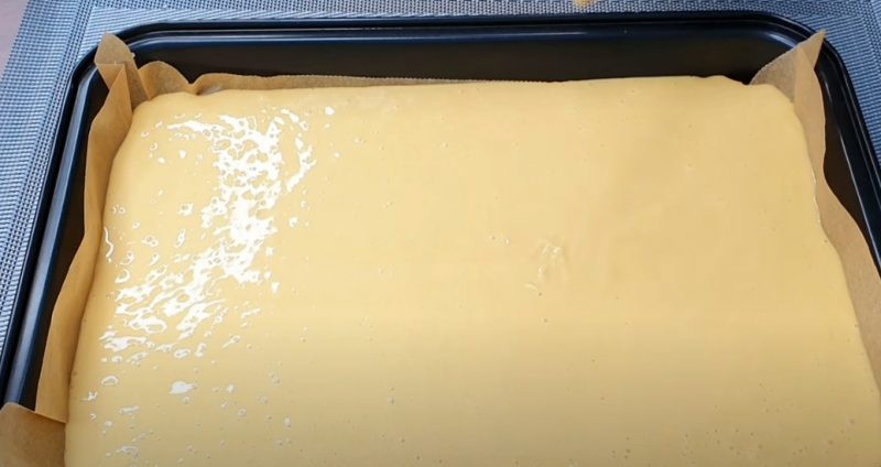 Kepame sausainius 45 minutes 150 laipsnių temperatūroje. Po kepimo leiskite barui atvėsti, supjaustykite cm nuo kiekvieno krašto.