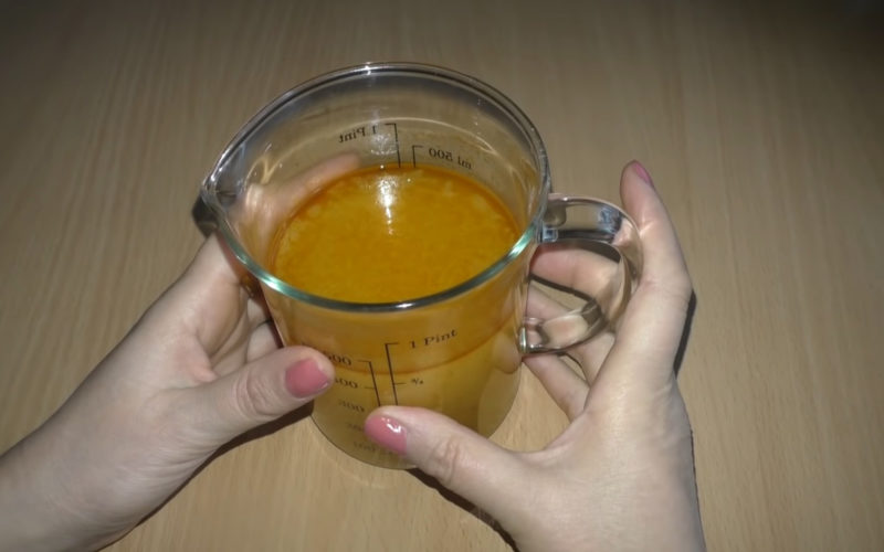 Į virtą krakmolą įpilkite šaltalankių aliejaus ir gerai išmaišykite.