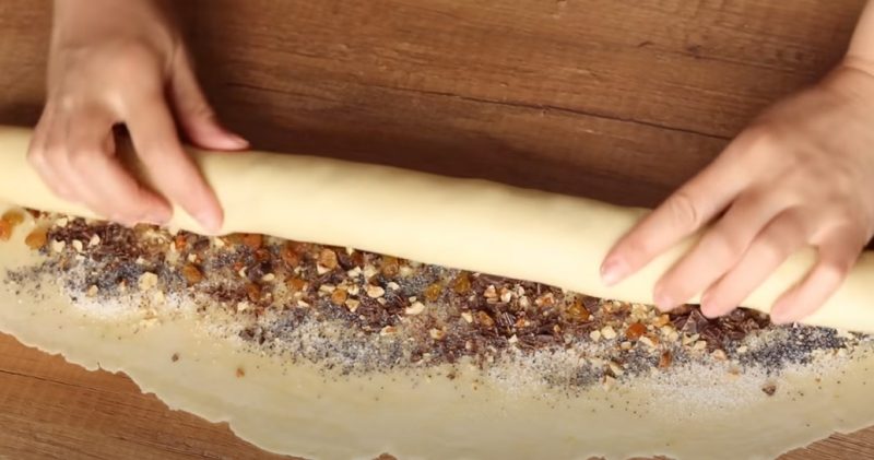 Pabarstykite cukrų, susmulkintus riešutus, aguonas su džiovintų vaisių gabalėliais, šokolado gabaliukus.