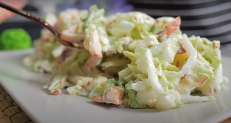Pekino kopūstai atsikrato pavogtos, šviečia lapus kuo smulkiau. Išvalykite obuolius nuo odos, supjaustykite plonais šiaudais.
