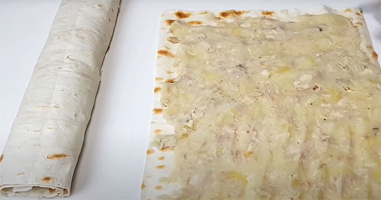 Lavašą galima greitai paversti gardžia bandele, kuri tampa puikiu užkandžiu. Jums tereikia lavašo, šiek tiek vištienos krūtinėlės ir bulvių košės.