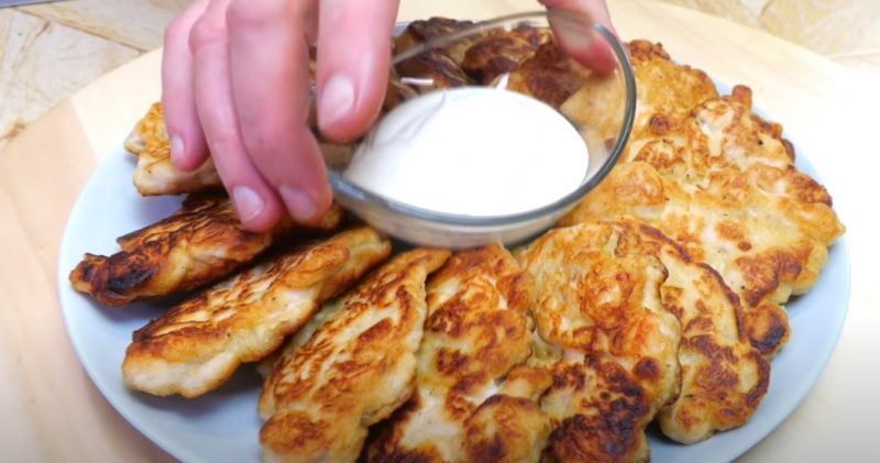 Šaukštas su šaukštu įdeda masę į kaitintą augalinį aliejų ir kepa kotletus ant mažos ugnies. Jis gali ir po dangčiu.