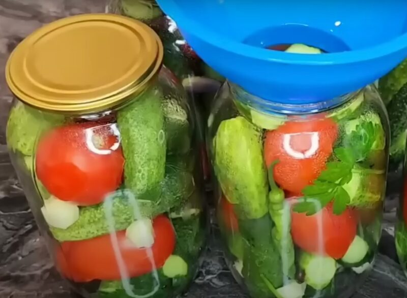 Šių salotų esmė – jų paruošimas. Vasarą jos ruošiamos marinuojant stiklainyje. Žiemą ar rudenį tiesiog išimkite stiklainį ir patiekite marinuotas daržoves.