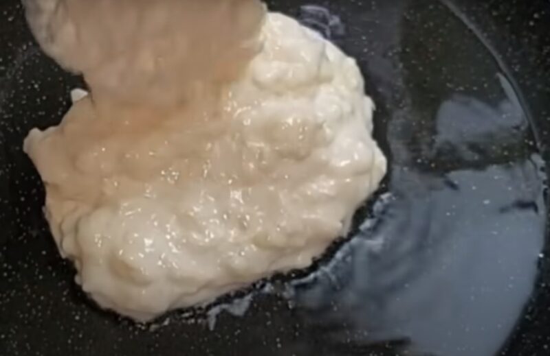 Keptuvėje su augaliniu aliejumi mes išdėliojame dalį tešlos, sudarome tortiliją. Kepti tingus khachapuri į auksinę plutą iš abiejų pusių po dangčiu.