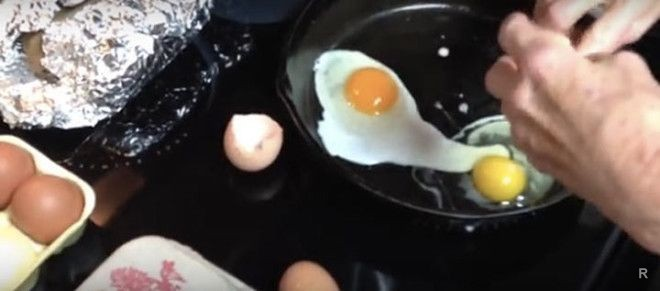 Iš pirmojo iš ūkininko pirkto padėklo įmuštas kiaušinis visiškai ištekėjo, o jo trynys pasirodė esąs oranžinis.