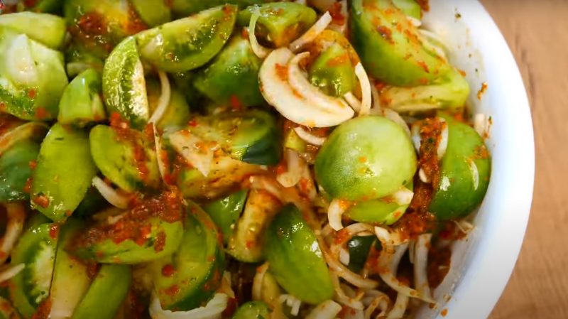 Žalieji pomidorai nėra blogesni už raudonus, o kai kurie receptai padeda padaryti labai originalų įdomų užkandį iš žaliųjų pomidorų ir priedų iš saldžių ir aštrių pipirų, skirtingų žalumynų pagal skonį.